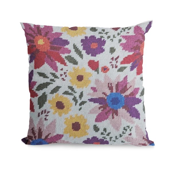 El KIT ALEGRÍA incluye todo el material necesario para bordar un cojín o un tapiz decorativo en medio punto o petit point como el de la fotografía. Todos los kits de DELICATELA se pueden bordar a punto de cruz. En ese caso, es posible que necesite más lana de la contenida en este kit.