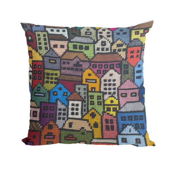 El KIT CINQUE TERRE incluye todo el material necesario para bordar un cojín en medio punto o petit point como el de la fotografía. Todos los kits de DELICATELA se pueden bordar a punto de cruz. En ese caso, es posible que necesite más lana de la contenida en este kit.