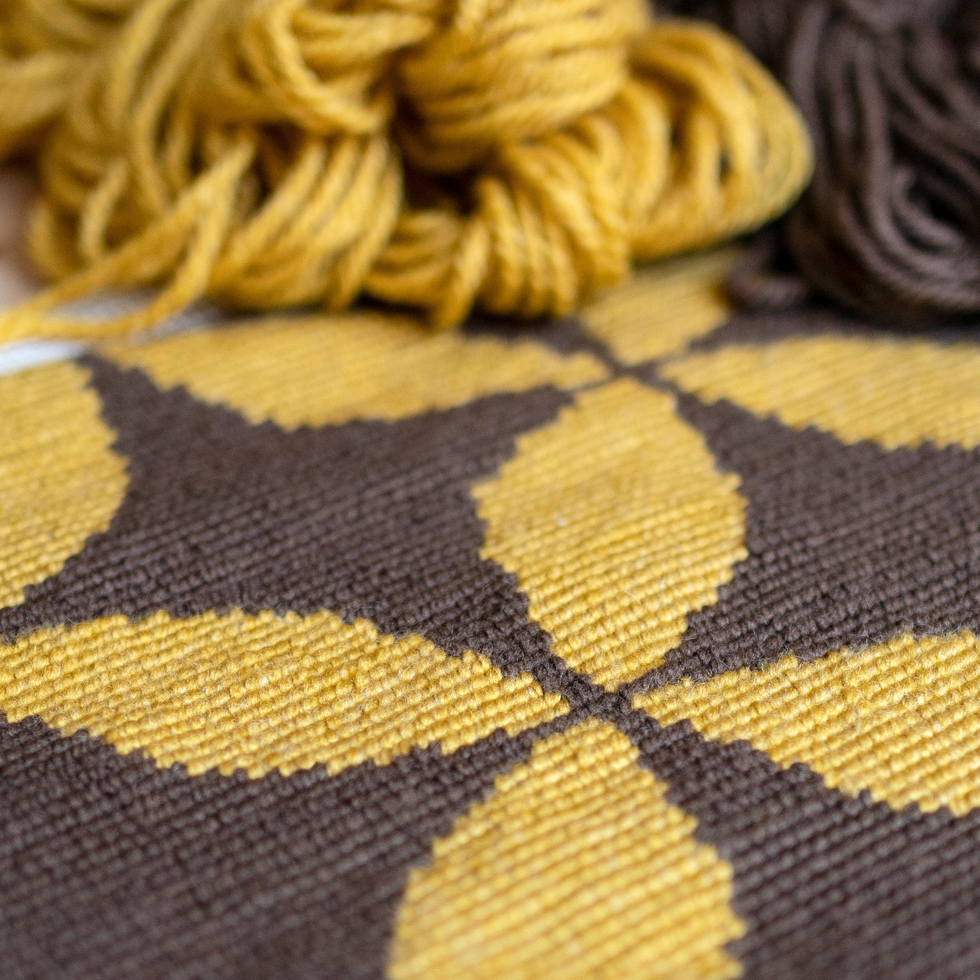 El KIT RETRO incluye todo el material necesario para bordar un cojín en medio punto o petit point como el de la fotografía. Todos los kits de DELICATELA se pueden bordar a punto de cruz. En ese caso, es posible que necesite más lana de la contenida en este kit.